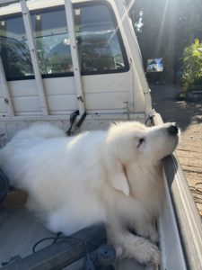 官兵衛は、後ろ姿になりました。(右下の白いワンコです)