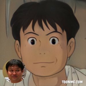 下の写真がピクサー風岡本と、ジブリ風岡本です。
