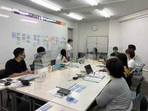 この写真はEGIJのSWOT分析をみんなでやって、ホワイトボードに意見を貼っていた時の写真です。
